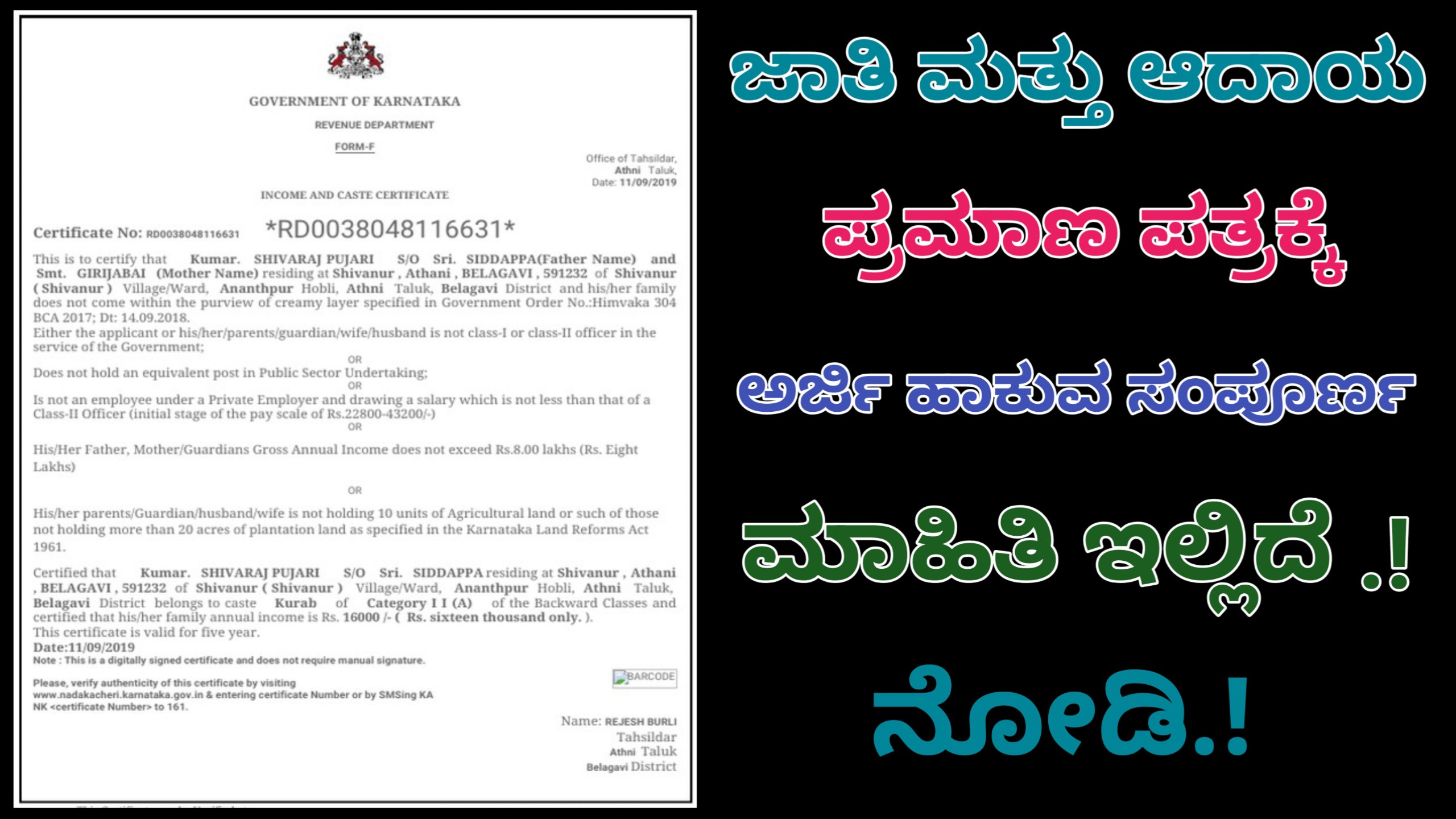 ಫೋನ್‌ನಲ್ಲೇ Caste ಮತ್ತು Income ಪ್ರಮಾಣಪತ್ರಕ್ಕೆ ಅರ್ಜಿ ಹಾಕುವ ವಿಧಾನ.!